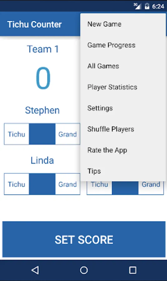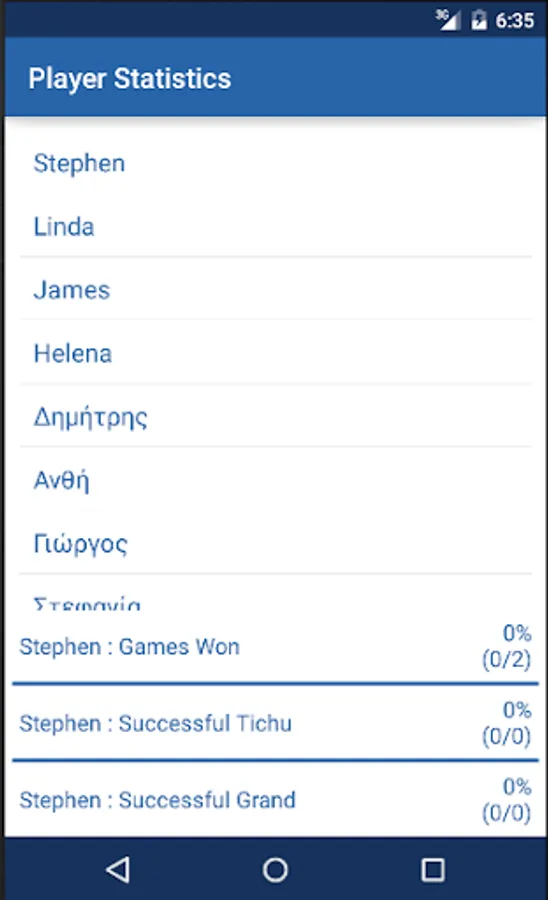 - Player Stats (Tichu, Grand, Games) - (Clear stats or Delete Player on click and hold)