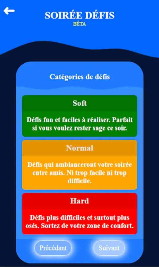 You can choose between 3 difficulties representing the level of difficulty and the level of courage to complete the challenges: