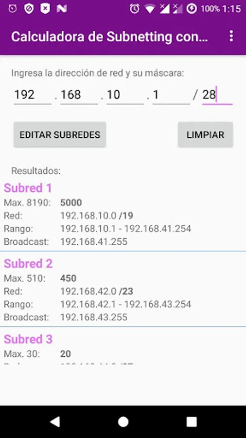 Simple subnetwork calculator with variable subnet mask (VLSM in English).
