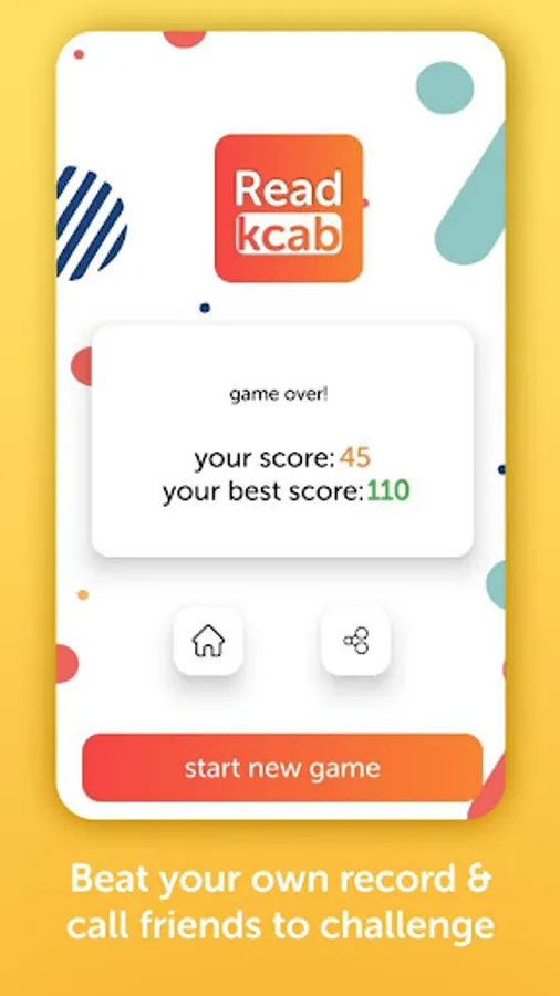 Welcome to Readback! In this fantastic word game, you will improve your reverse reading and spelling skills at the same time you challenge your friends with score and time.