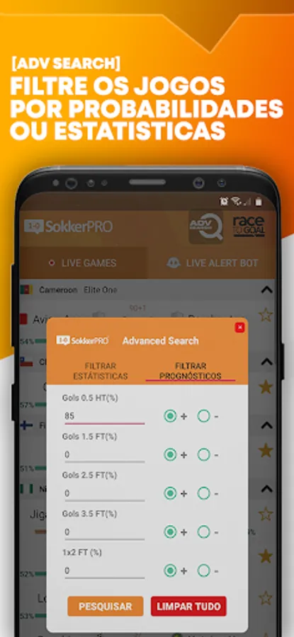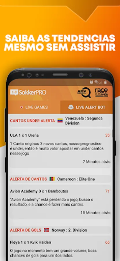 Exclusive feature that only you can find in our app, now it's clear to see which team is closer to score a goal, when a game enters the Race to Goal list, it is very likely that a goal will happen in the game