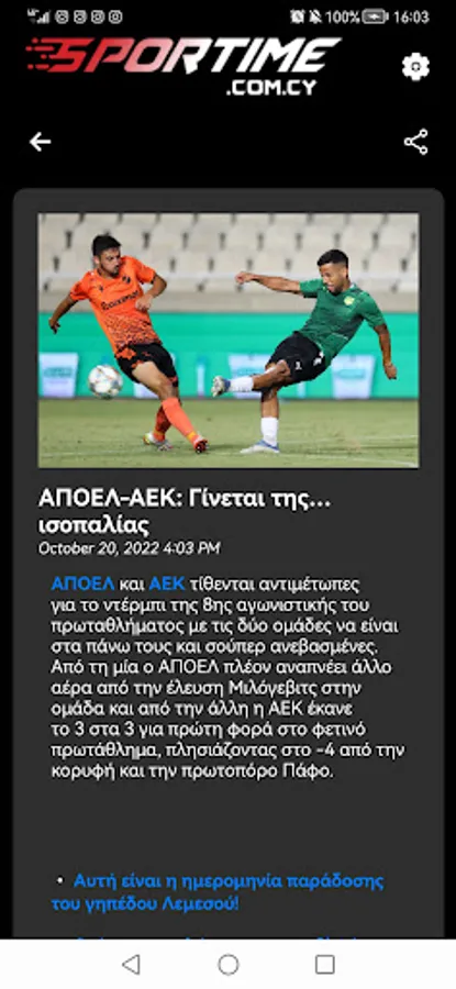 sportime.com.cy is a modern sports portal in online information. It innovates in content but also in its overall presentation. It is fully compatible on computers and mobile devices and particularly easy to navigate. Now Sportime also in Mobile Application. In addition, it is a portal that provides comprehensive information as well as all sports news from Cyprus, Greece and the rest of the world.