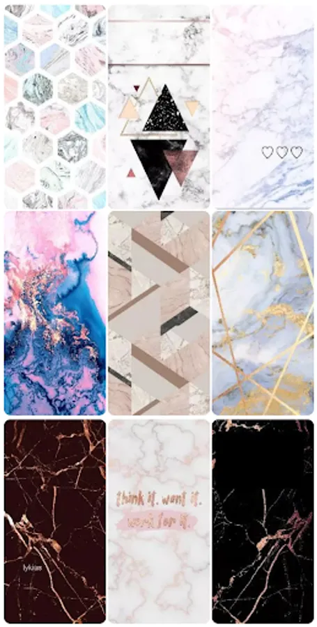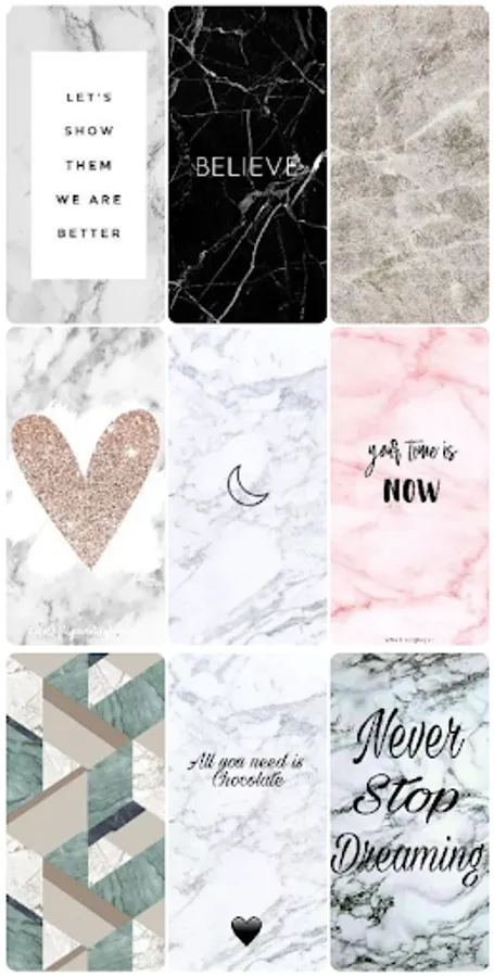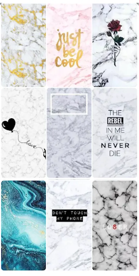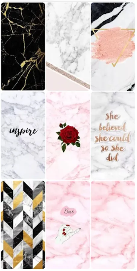 MARBLE WALLPAPERS is an application that provides you with large variety of awesome wallpapers devided into many categories; some of them are as following: melanin wallpaper, neon wallpaper, silhouette wallpaper, sad wallpaper, black wallpaper, girly wallpaper, cute wallpaper, rose gold wallpaper, teen wallpaper, finger heart wallpaper, holographic wallpaper, etc....With this application you can give a beautiful appearance to your home and lock screen backgrounds.