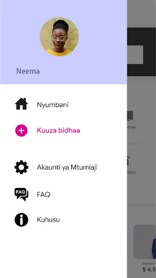 Download the app then open your account. You can start immediately to set up your products that you want to sell. You can be seen by other users depending on your items and location when the product is available. See who's in the market app near you, then start making money through your product. You can find other users near you and everywhere in Tanzania, Kenya and more.