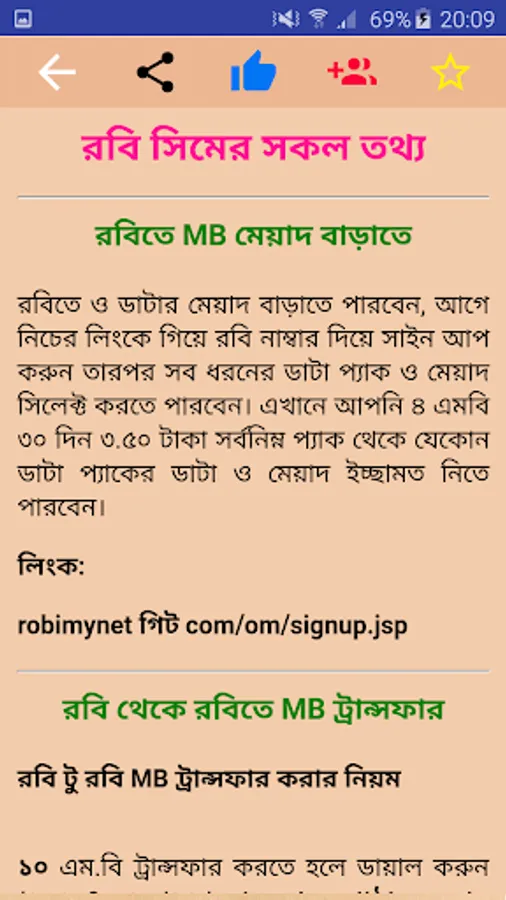 সকল সিমের এমবি মেয়াদ বাড়ানোর উপায় সহ অন্যান্য সকল সিমের এমবি অফার জানতে আমাদের এই অ্যাপটি আজই ডাউনলোড করে নিন । এই অ্যাপটির সাহায্যে জানতে পারবেন সকল সিমের এমবি প্যাকেজ ও বিভিন্ন প্রকার সকল সিমের কোড। বাংলাদেশের সকল সিমের অফার নিয়ে মূলত আমাদের এই অ্যাপ, রয়েছে গ্রামীন সিমের এমবির অফার ও রবি , এয়াটেল , টেলিটক ও বাংলালিংক এর সকল তথ্যবলি।