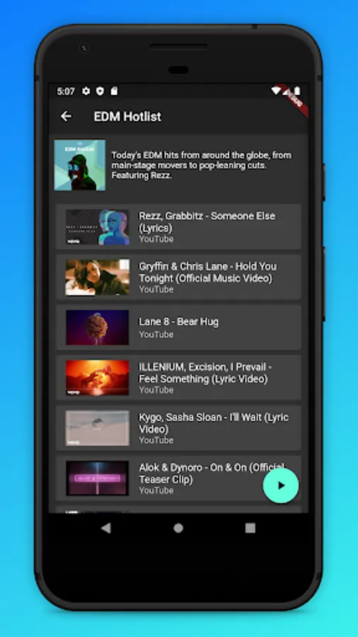 A Flutter app that allows YouTube videos to be streamed like a music service. Provides popular and trending music videos from YouTube. Listen to playlists with the latest releases curated by YouTube.