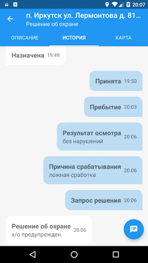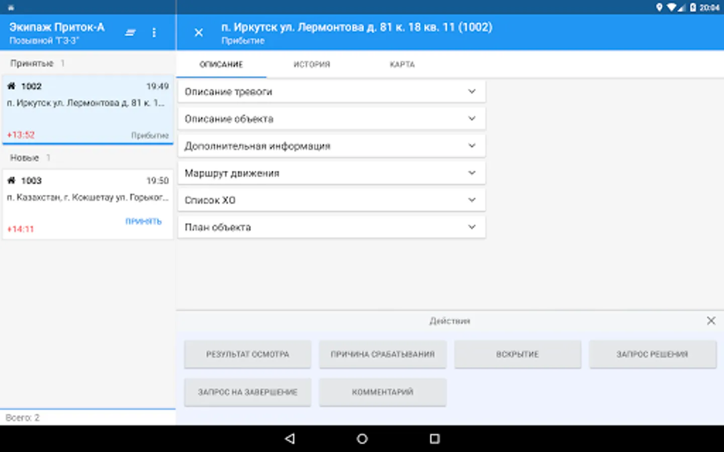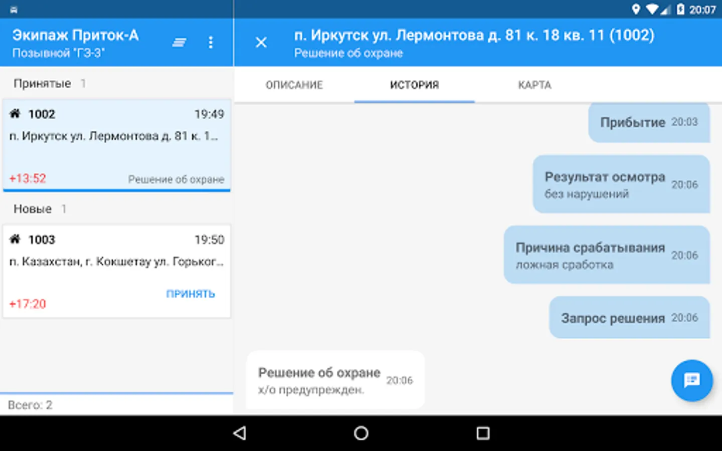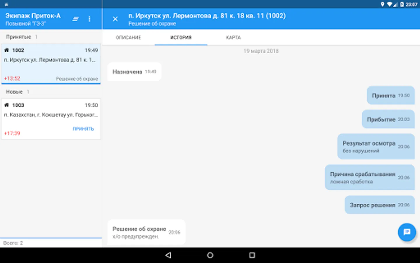 The program is designed for employees of the detention group, installs and runs on devices with Android OS. "The Crew" allows employees to quickly, validate and manage the sent-duty remote centralized monitoring information relating to the alarm object.