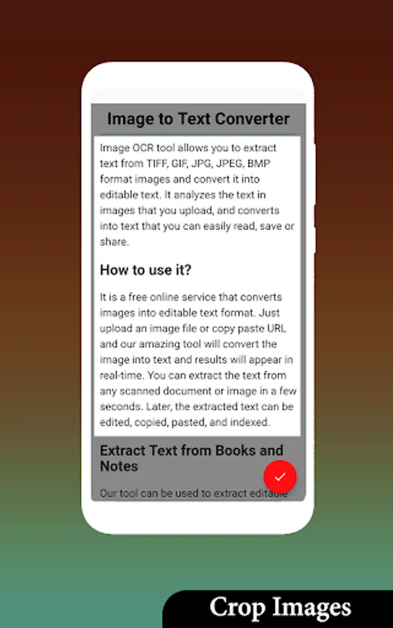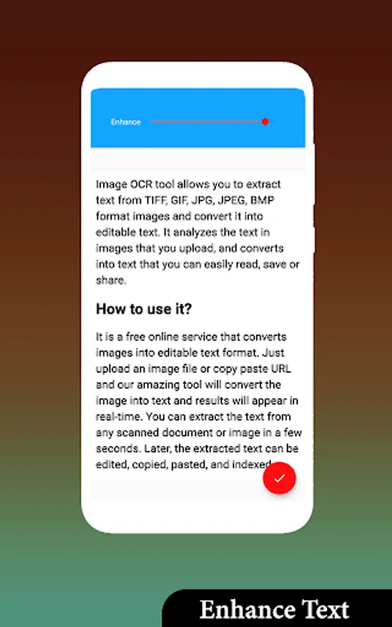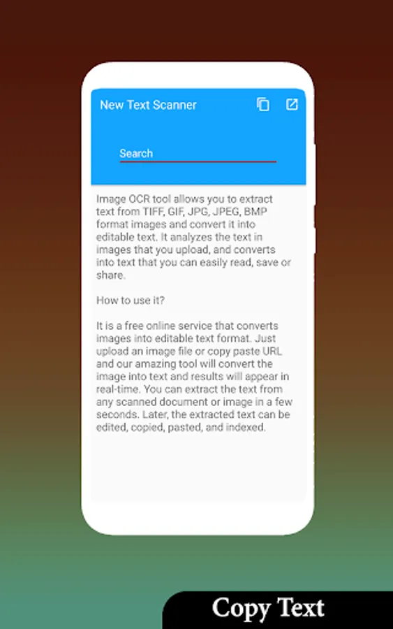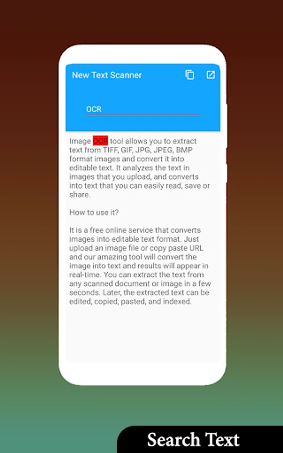 Image to Text scanner app for android you can convert your image into text format with the help of ocr scanner app. it is so time-taking to write mail or link from newspaper magazines or business cards details on yours smartphones search engine. time is so short and you have to write a lot of stuff and you are in a mess of draft papers and the great mess is that you have to shift your all work into any platform or any edit tools for publication or any other blogging sites for post text scanner. There are some situations when someone says, please send text instead of full image so at that time this app will help you an convert any image text or picture text or real words text. you will check spellings again and again so it is very trouble for you to do that. so ocr text scanner app is here to solve your problem within a second.