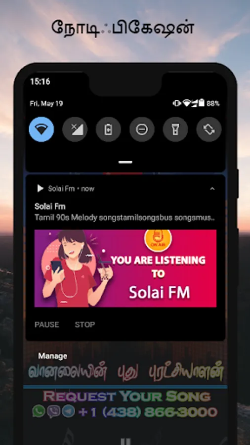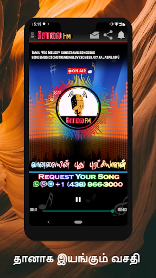 உங்கள் இல்லங்கள் தோறும் இன்னிசை பெருக இன்பத் தமிழ் மணம் கமழ உலா வருகிறது சோலை FM.