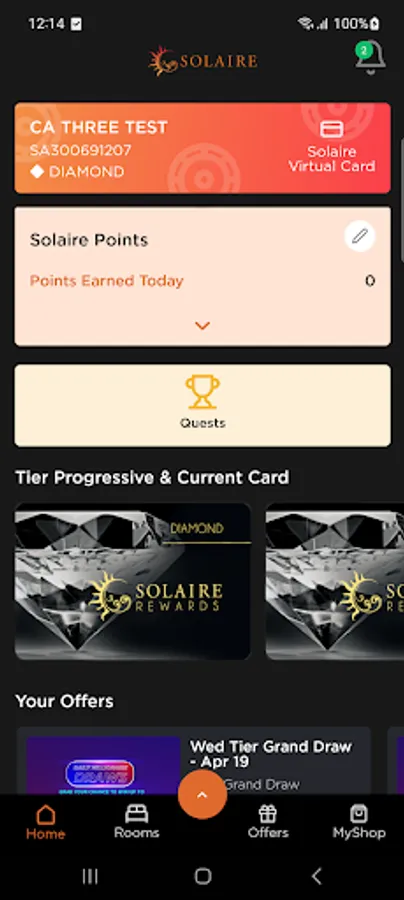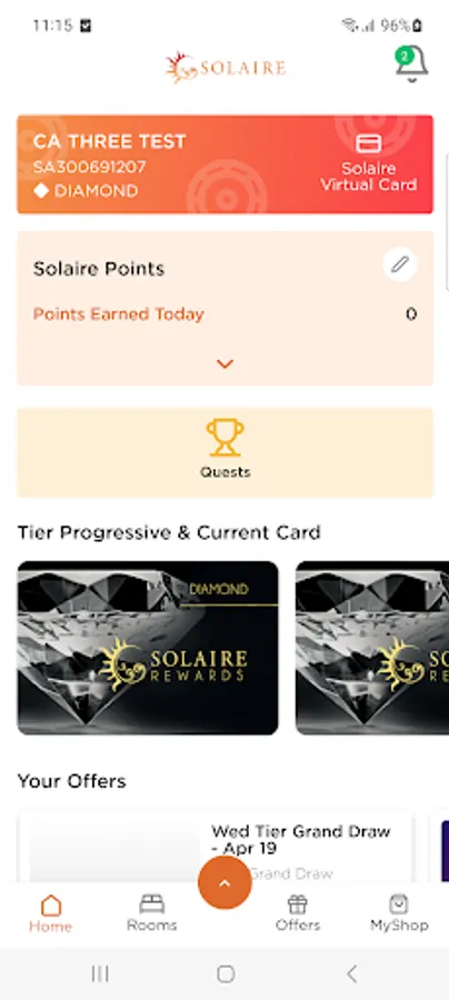 Use the Solaire Rewards app while connected to Solaire Guest WiFi to fully experience its functionality.