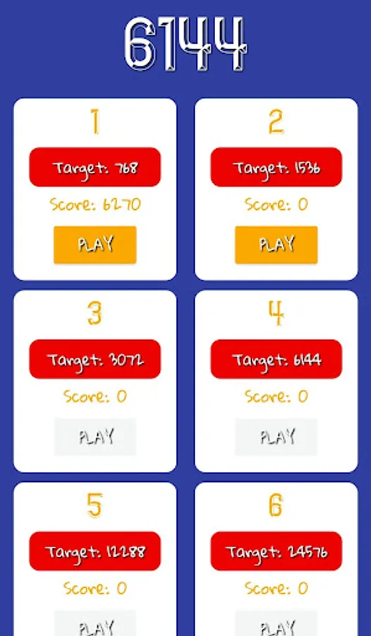 - This 6144 game also supports stages, you win the stages at specified number like 768, 1536, 3072, 6144 and so on and next stage start with target number previous stage.