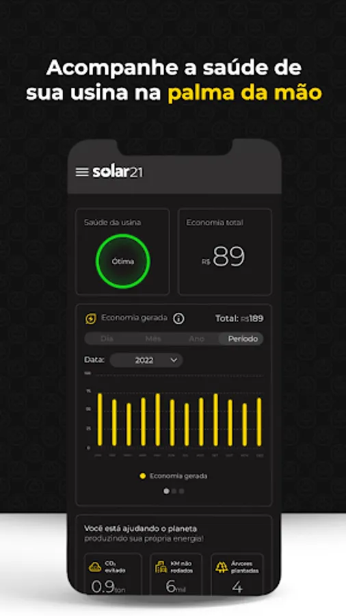 In the super App Solar21 you can monitor your savings and solar energy production, all in real time.