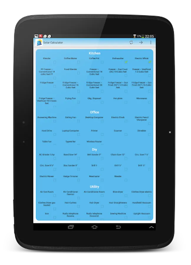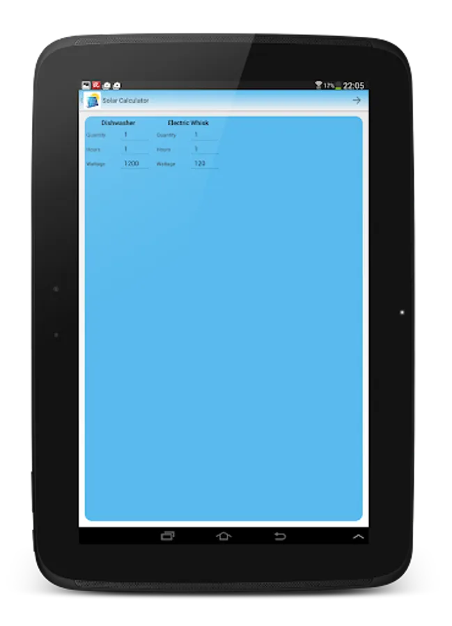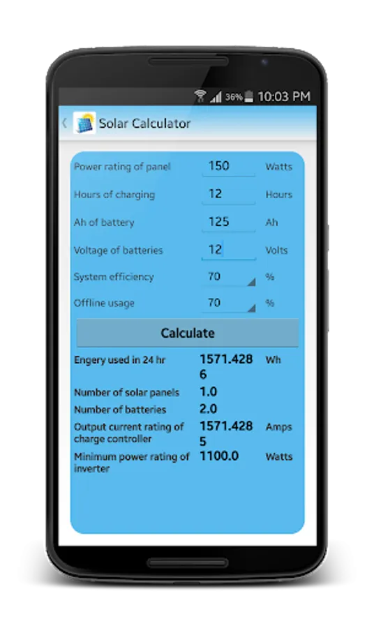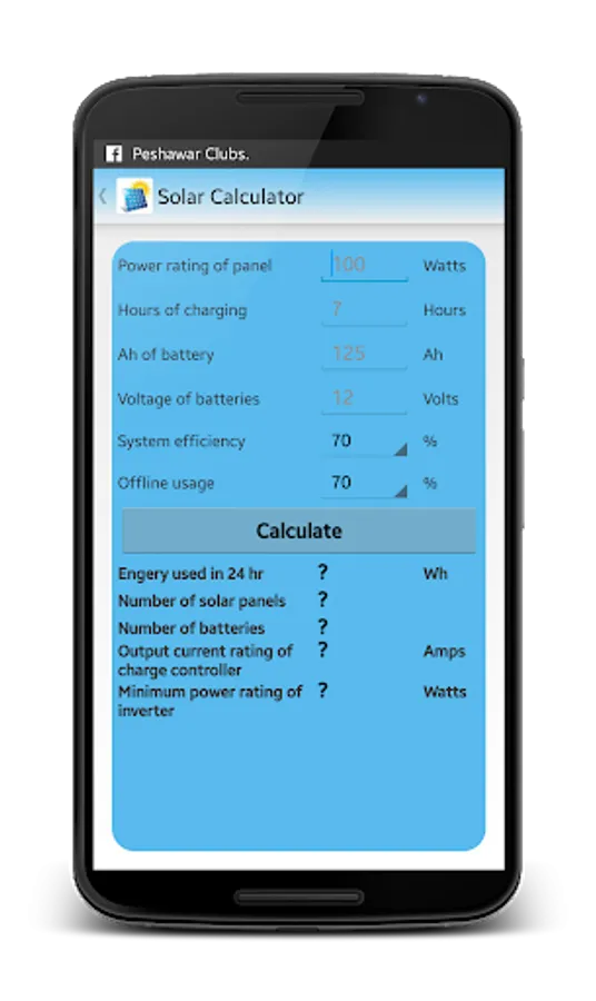 Solar Calculator is used to calculate the number of solar panels and batteries used for daily household usage. It's very easy to use. The calculation is done in three very simple steps.