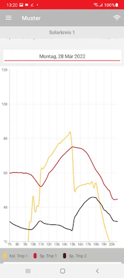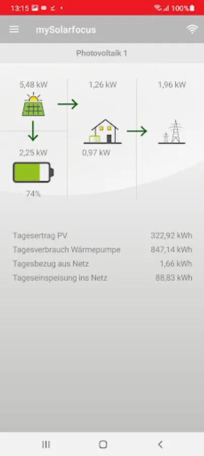 If a thermal solar system is available, the heat yield and temperature curves can be tracked in an attractive graphic.
