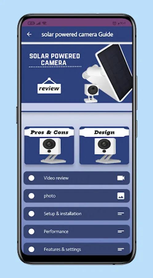In the solar powered camera Guide app, you will find everything you want and need to know about your solar powered camera app