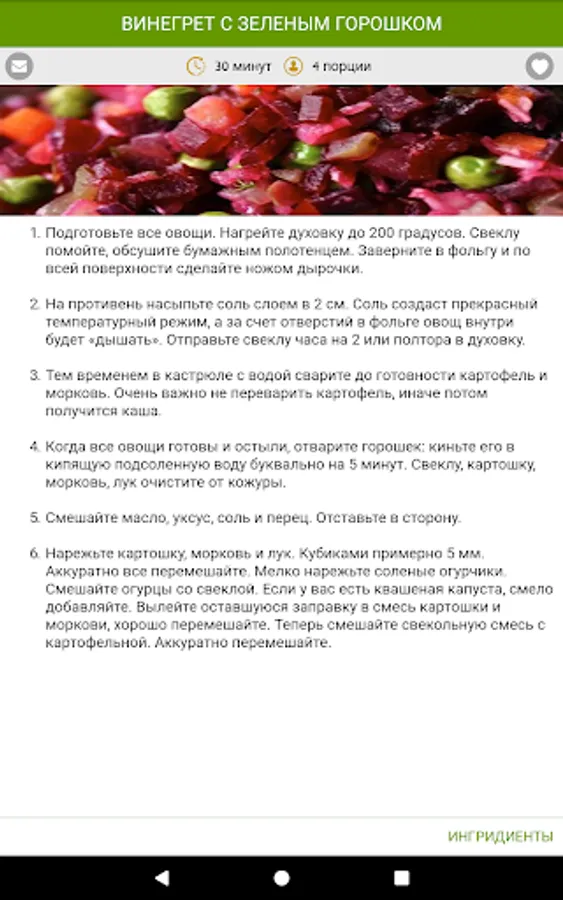 If you like the salad recipe, do not forget to share it with your friends! And also to rate our application.