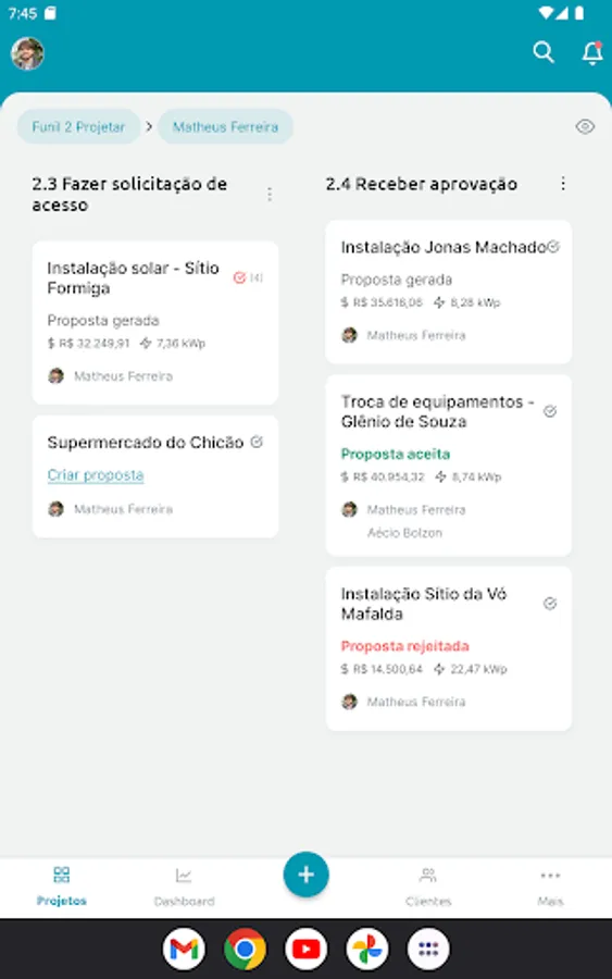 Join 2000+ solar energy integrators and automate your processes. Manage leads and customers, issue proposals, documents and contracts with electronic signatures, buy equipment from distributors and request financing. All in one place.