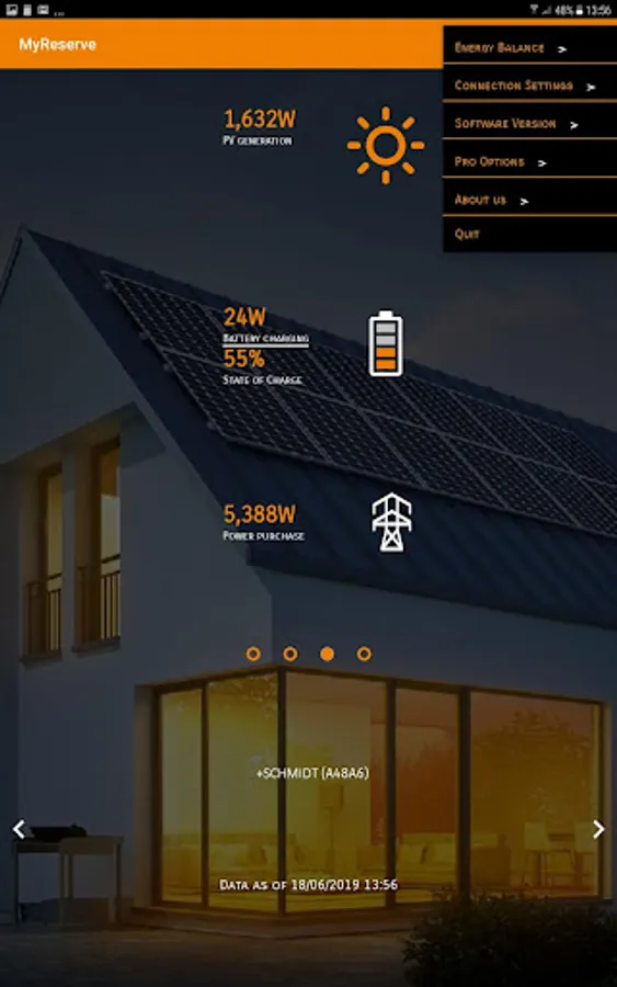 The MyReserve app for your smartphone or tablet. See the essential operating data of your SOLARWATT MyReserve power storage at a glance. The visualization includes the current generation, the state of charge and the charging / discharging power of the power storage. A MyReserve 20 or MyReserve 25 power storage device is required to use the app.