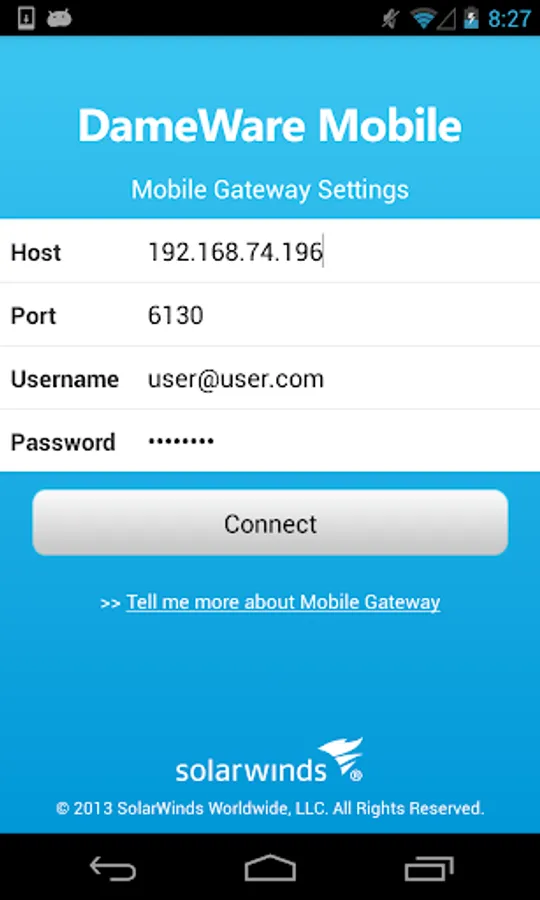 DameWare Mobile lets you remotely access and troubleshoot all of the Windows computers on your network from anywhere from your Android device. DameWare Mobile brings the powerful desktop remote control features of the award-winning systems administration software, DameWare Remote Support (DRS), to your Android device.