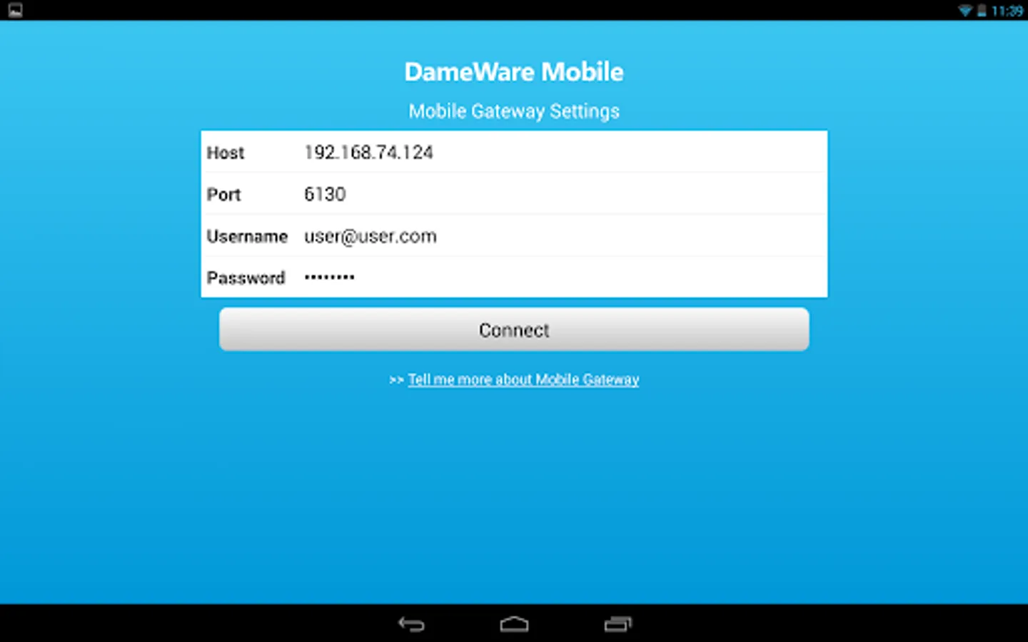 DameWare Mobile will only work with a trial or fully licensed copy of DameWare Remote Support installed on your network. Before using DameWare Mobile, you must first download, install and configure DRS including the DameWare Mobile Gateway service. You must also deploy the DameWare agent to all computers you wish to connect to. Please visit the DRS website for more information regarding the configuration of DRS and the DameWare Mobile Gateway service.
