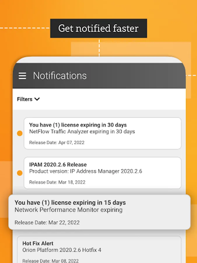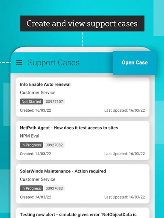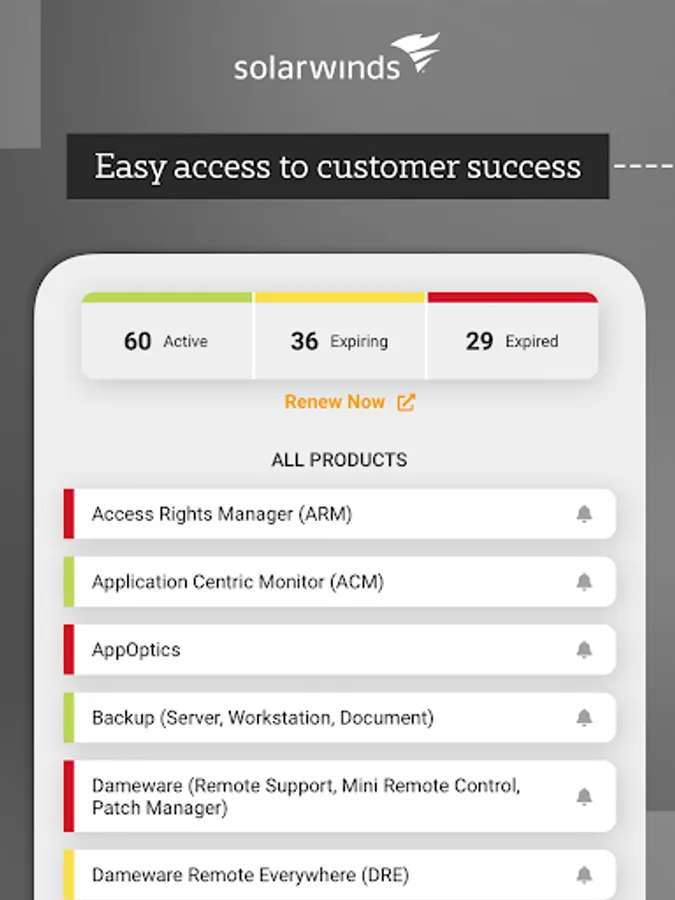 Need help on the go? SolarWinds® Customer Success mobile application is an extension of SolarWinds Customer Portal that gives you quick access to account information and product tools.