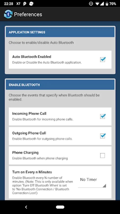 Auto-Bluetooth automatically turns on Bluetooth based upon your settings:
