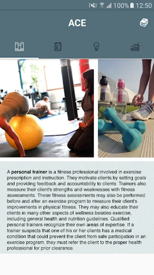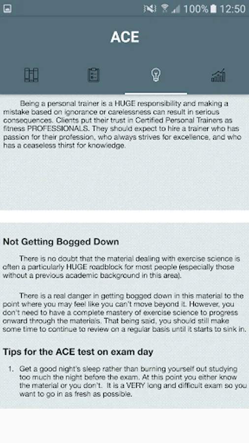ACE provides 12 and 20 week study coach programs which are sent through email with the main purpose of guiding you through the material in a structured way. While you aren’t restricted to those time frames, people often start to stress out as they feel themselves slipping behind schedule. With this app you can keep your newfound fitness knowledge fresh by regularly performing tests. Take your fitness passion to the next level and get certified!