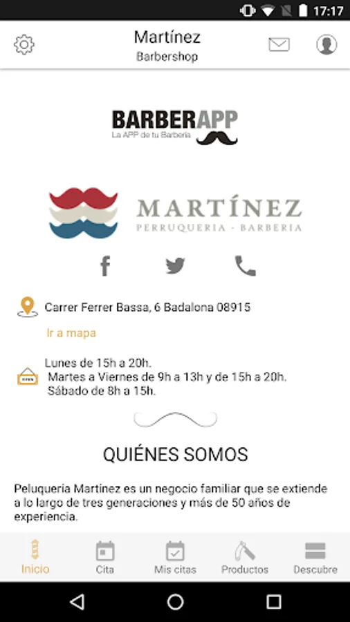 With our mobile app Martínez Barber Shop you can quickly and easily ask for an appointment at any time from your mobile, without having to call or wait lines at our barbershop. You will be keeping appointments and the number of times you come to our barbershop so you can enjoy discounts and promotions. In addition, we will inform you of offers and events to celebrate. Ah! And take advantage of it to reserve the products we sell in our establishment.