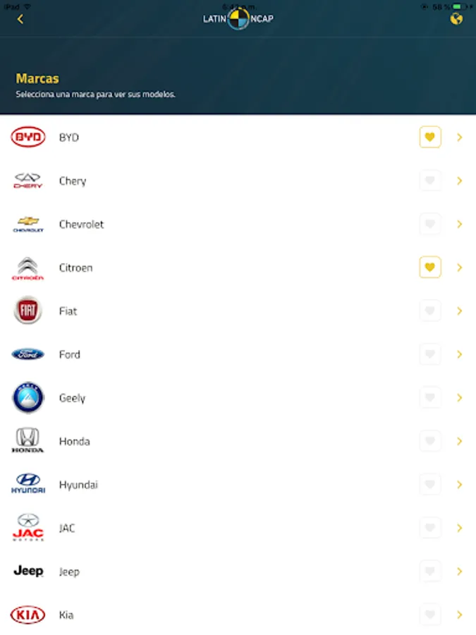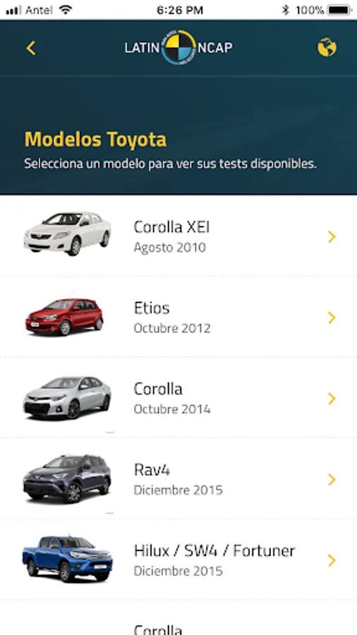 The official app of Latin NCAP offers users the ability to access the results of safety tests of different vehicle models.