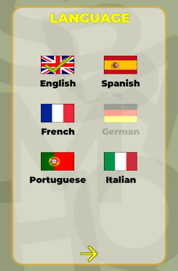 Word languages: English, Spanish, French, German, Italian and Portuguese.