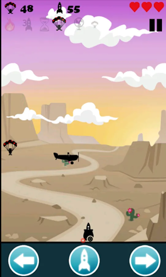The game consists of shooting missiles at the falling paratroopers.