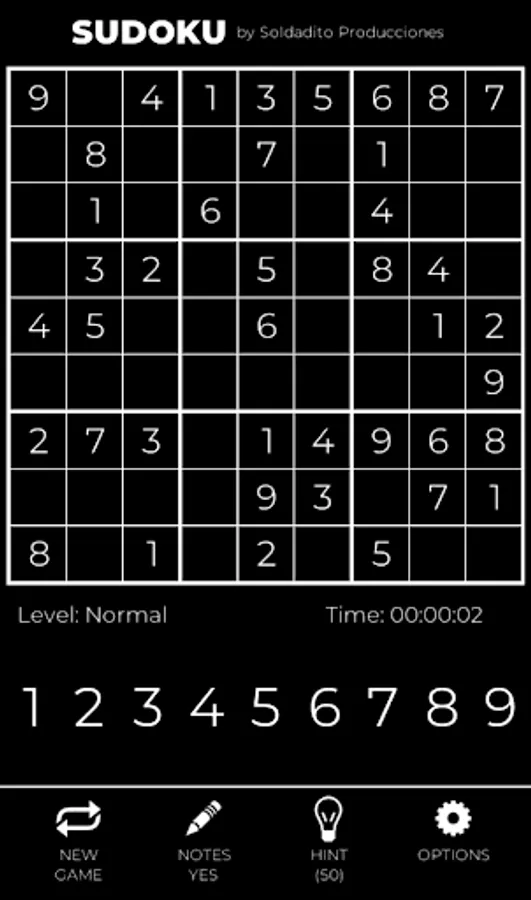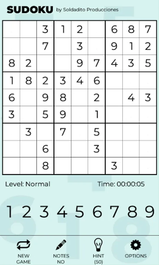 Simple game consisting of a grid of 9X9 squares, divided into regions of 3X3 squares.