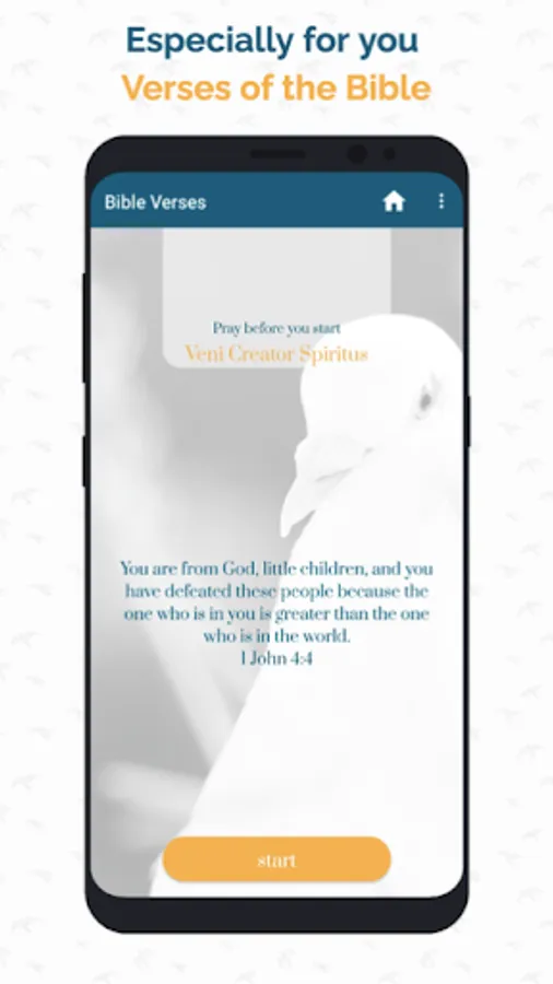 Also, the app application includes the Random Verses of the Bible. Pray before you start «Veni Creator Spiritus» and then click «start». You will get words especially for you.