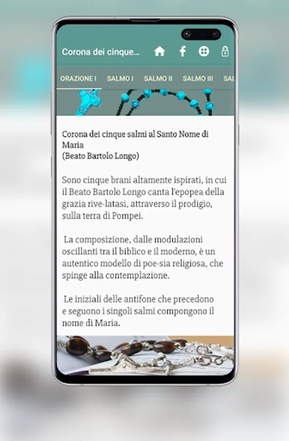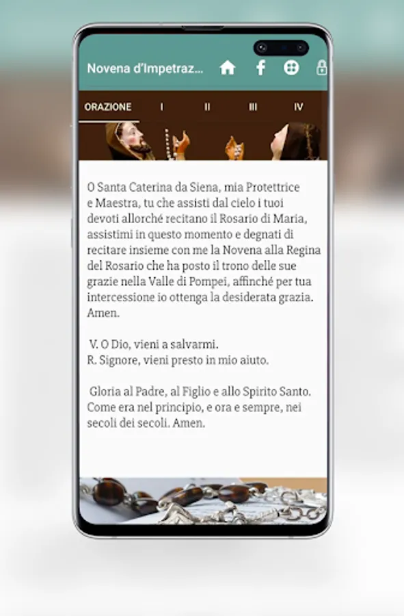 The application includes several prayers to the Virgin of Pompeii. This app has all the necessary prayer practices based on the 54 Day Holy Rosary Rosary.