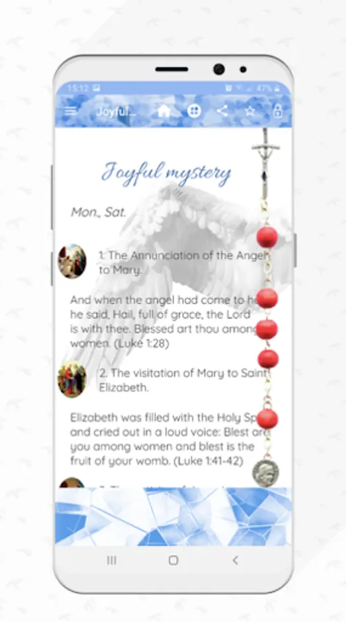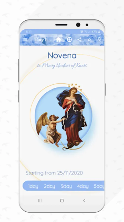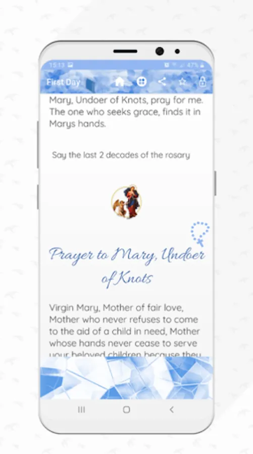The app has all the necessary prayers for Mary Undoer of Knots. The best solution for daily prayer.