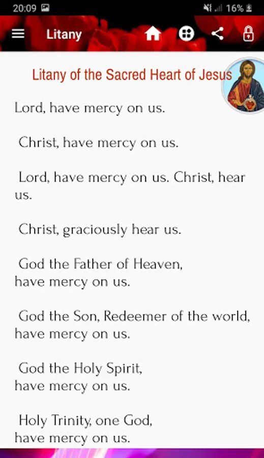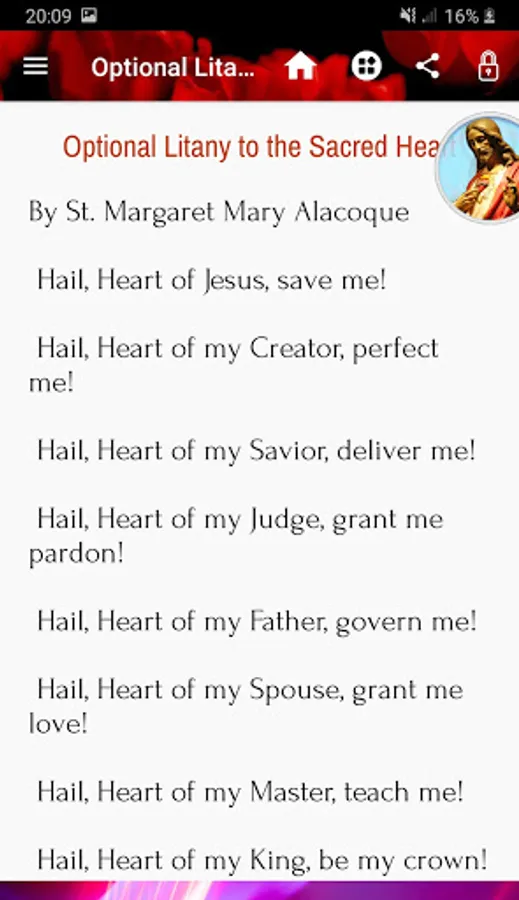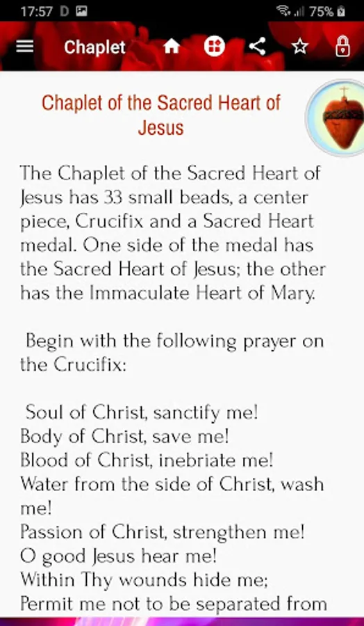 The Application includes different prayers to Sacred Heart of Jesus. The best