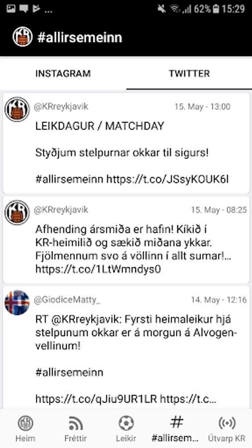 Með KR Reykjavík App ertu alltaf með nýjustu fréttir og upplýsingar um KR í vasanum.