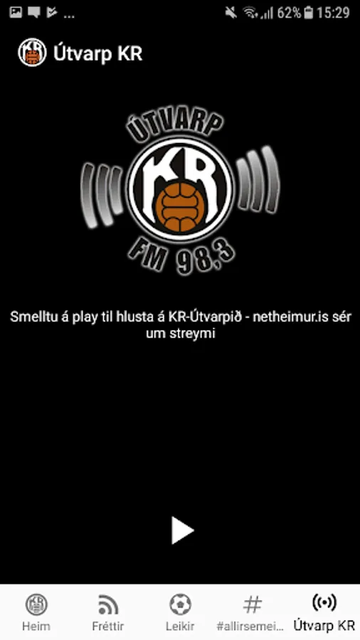 •Hlusta á beinar útsendingar hjá KR-Útvarpinu og skoðað fréttir í leiðinni