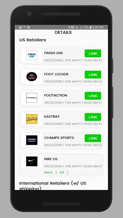 SOLE LINKS keeps you informed with upcoming sneaker releases and provide product links to authorized retailers. Set push notification on to get real time updates on restocks. Sign up to be able to save your favorite releases.