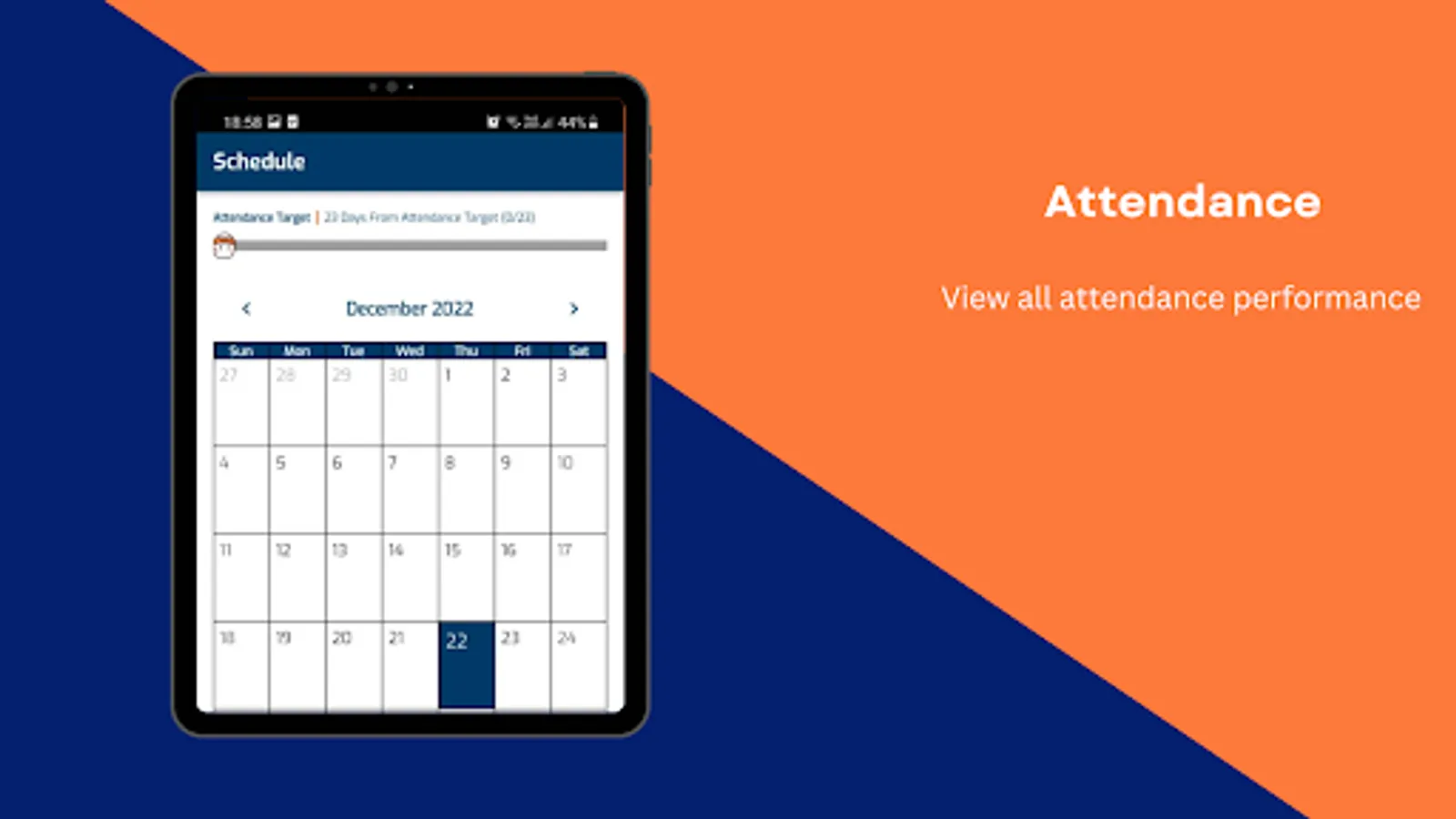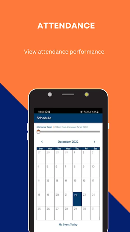 You able to view your attendance for each month. You are also able to view total present day and total absent day in a month.