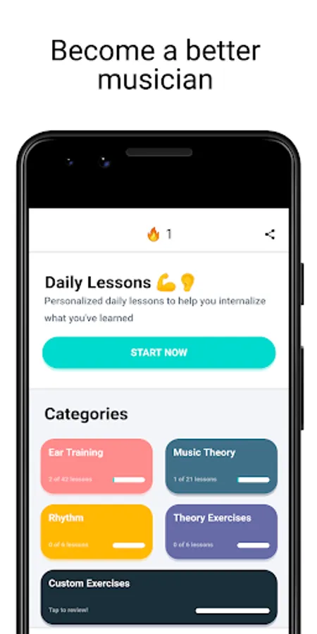 On top of the lessons, Solfej curates daily lessons personalized to internalize what you've learned so far.