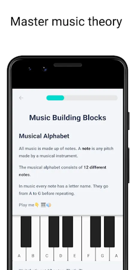 - Music theory quizzes and lessons ranging from basic notes to complex chords