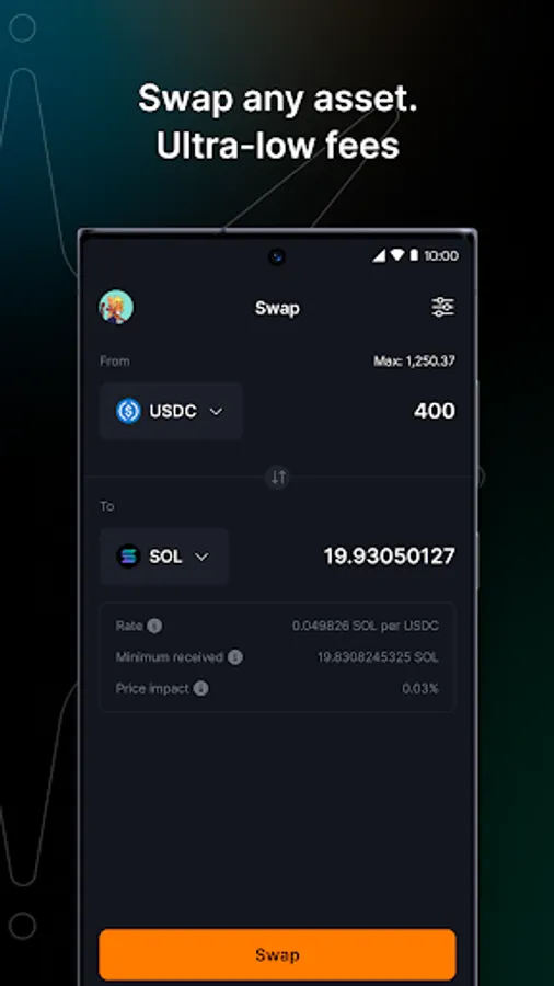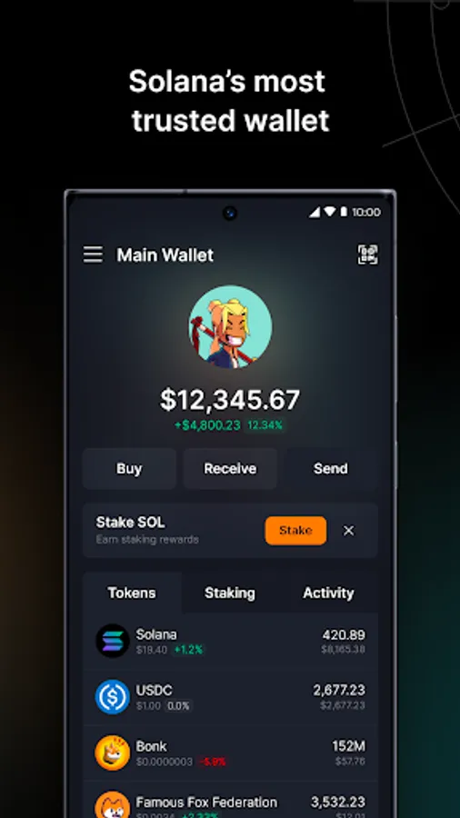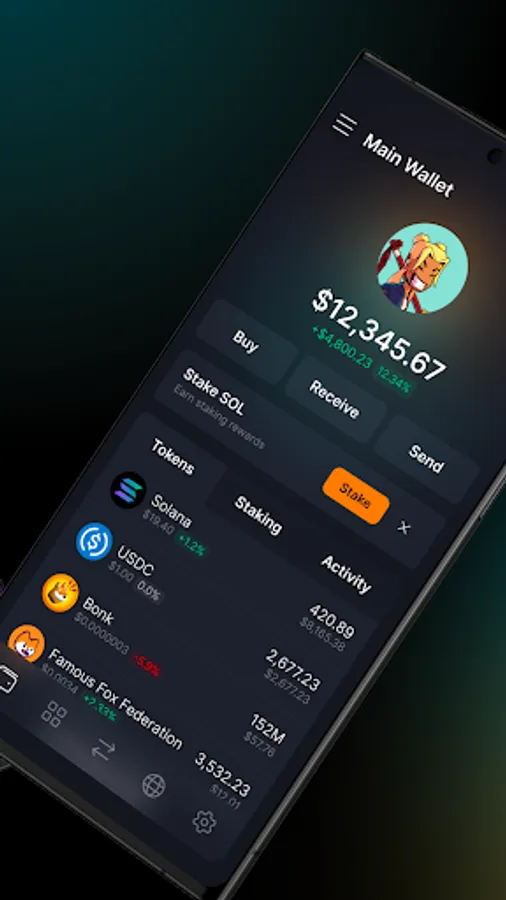 Buy, send, stake, swap and trade tokens right from your phone; use hardware wallets like Ledger, connect to Solana dApps and DeFi protocols, get blockchain notifications, and experience a whole new internet directly from your phone.