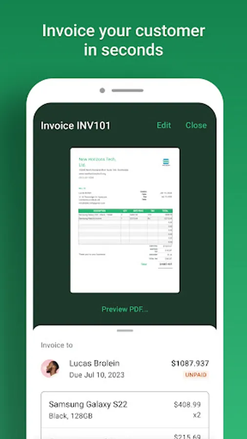 Invoice & Receipt Maker is feature-rich invoicing solution designed for freelancers and small business owners to create and send PDF invoices, estimates, quotes, receipts.