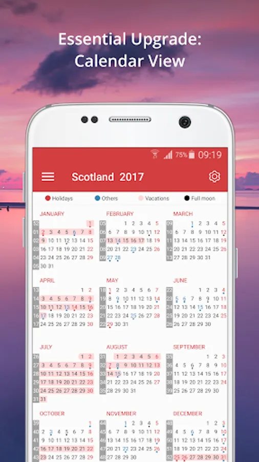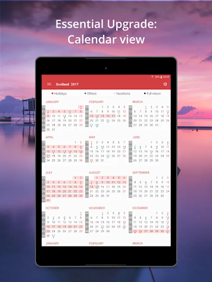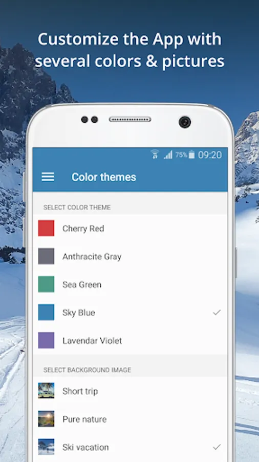 Customise the Holidays and Vacations 'App by selecting your favourite color and background picture.