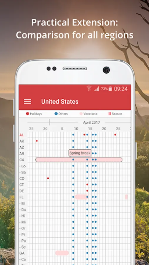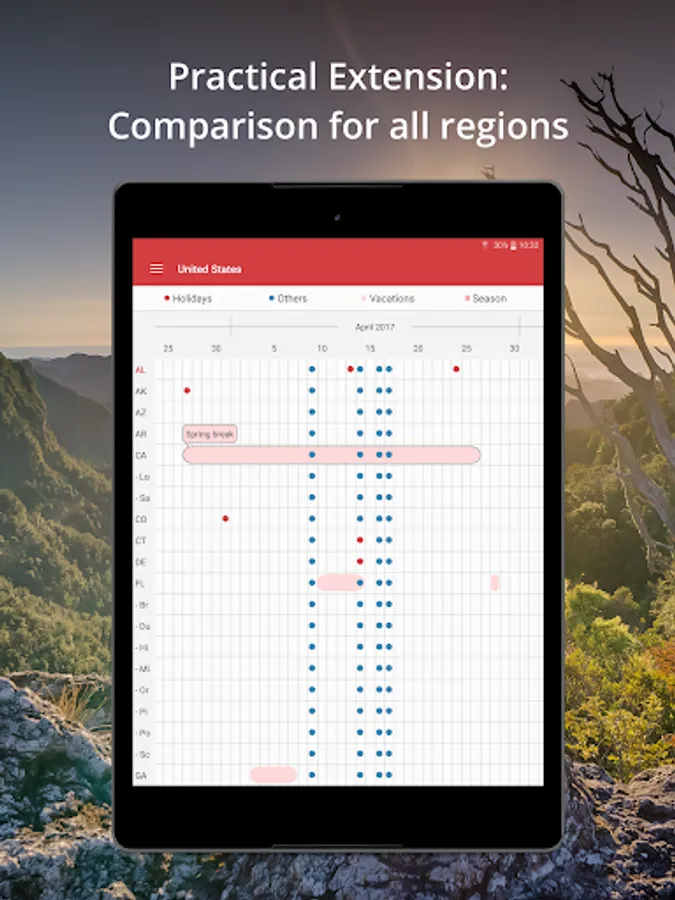 You can get more information and a web view of the Holiday and Vacation App at: www.holidaycalendar.com.