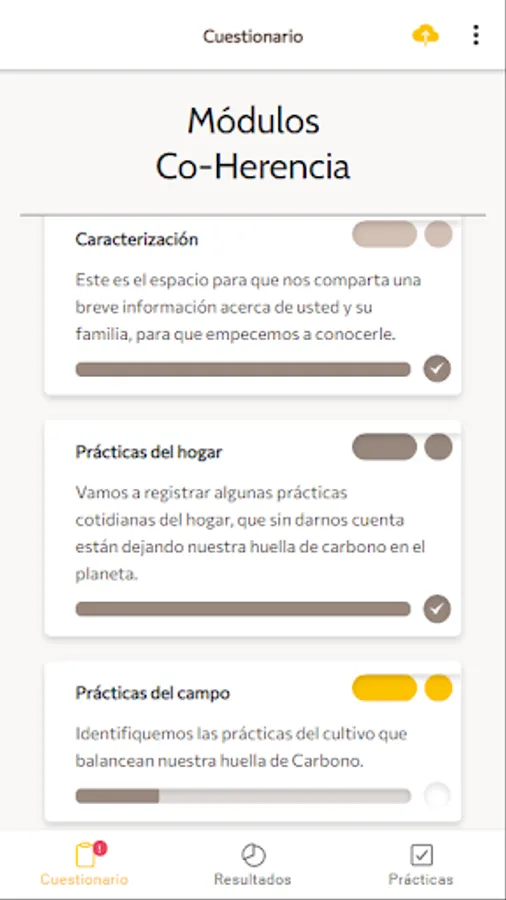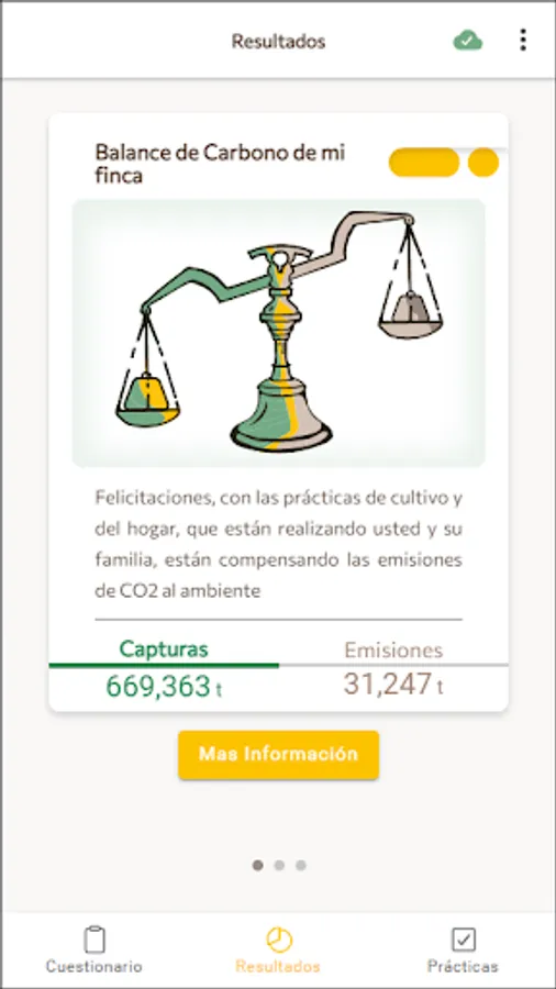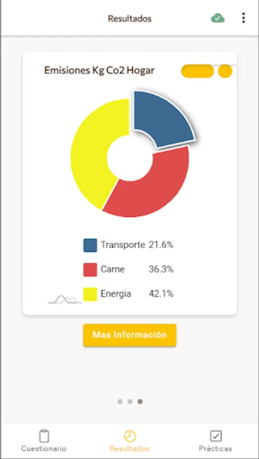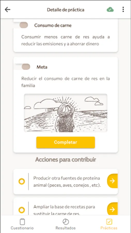 The application works in three main parts. First, there is a questionnaire that collects information about practices at home and on the farm. The app then calculates the carbon footprint and displays the result with a breakdown of the carbon source. Lastly, there is a section with 10 practices that you can use to reduce your carbon footprint along with challenges and a point system.