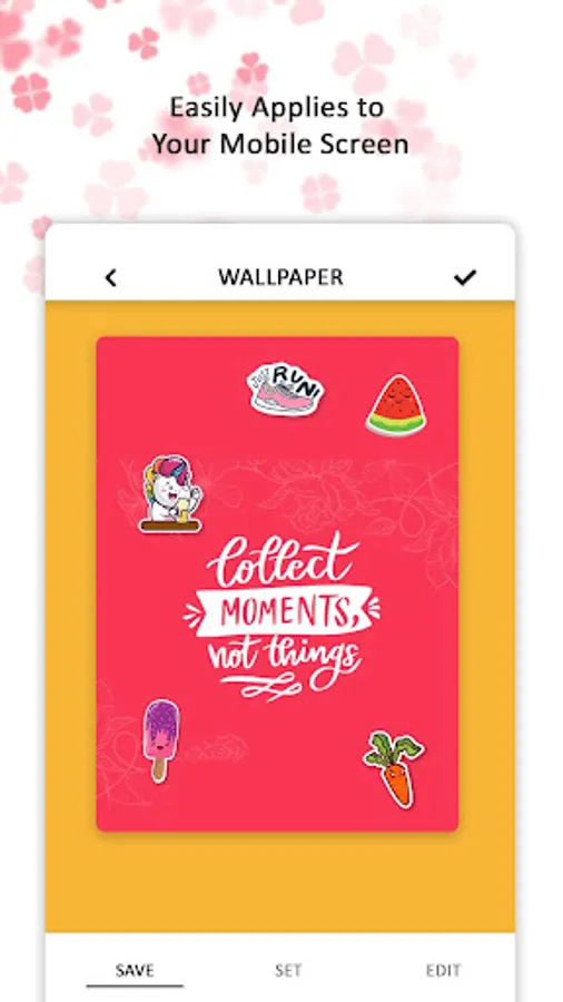• Easily choose from a range of stickers to suit your every mood and frame it to give your Wallpapers an attractive edge like never before.