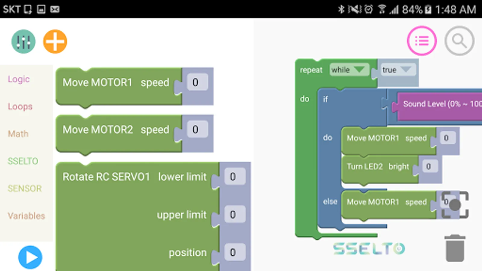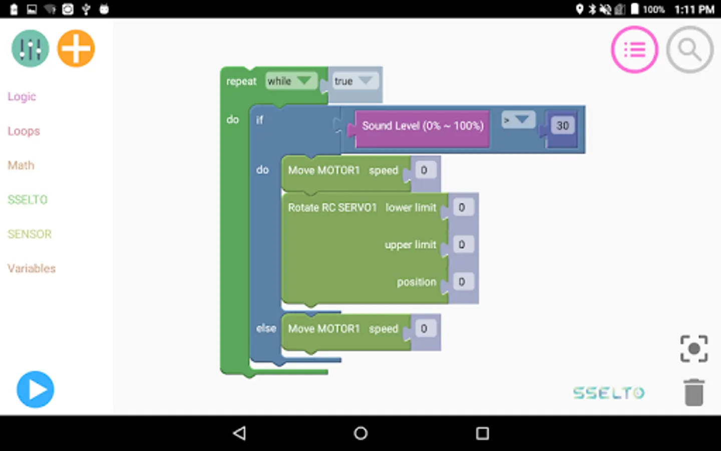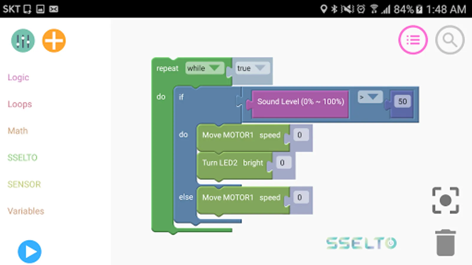 The 'SSELTO coding' is based on Google blockly used in Scratch and many other projects around the world.(https://developers.google.com/blockly/)