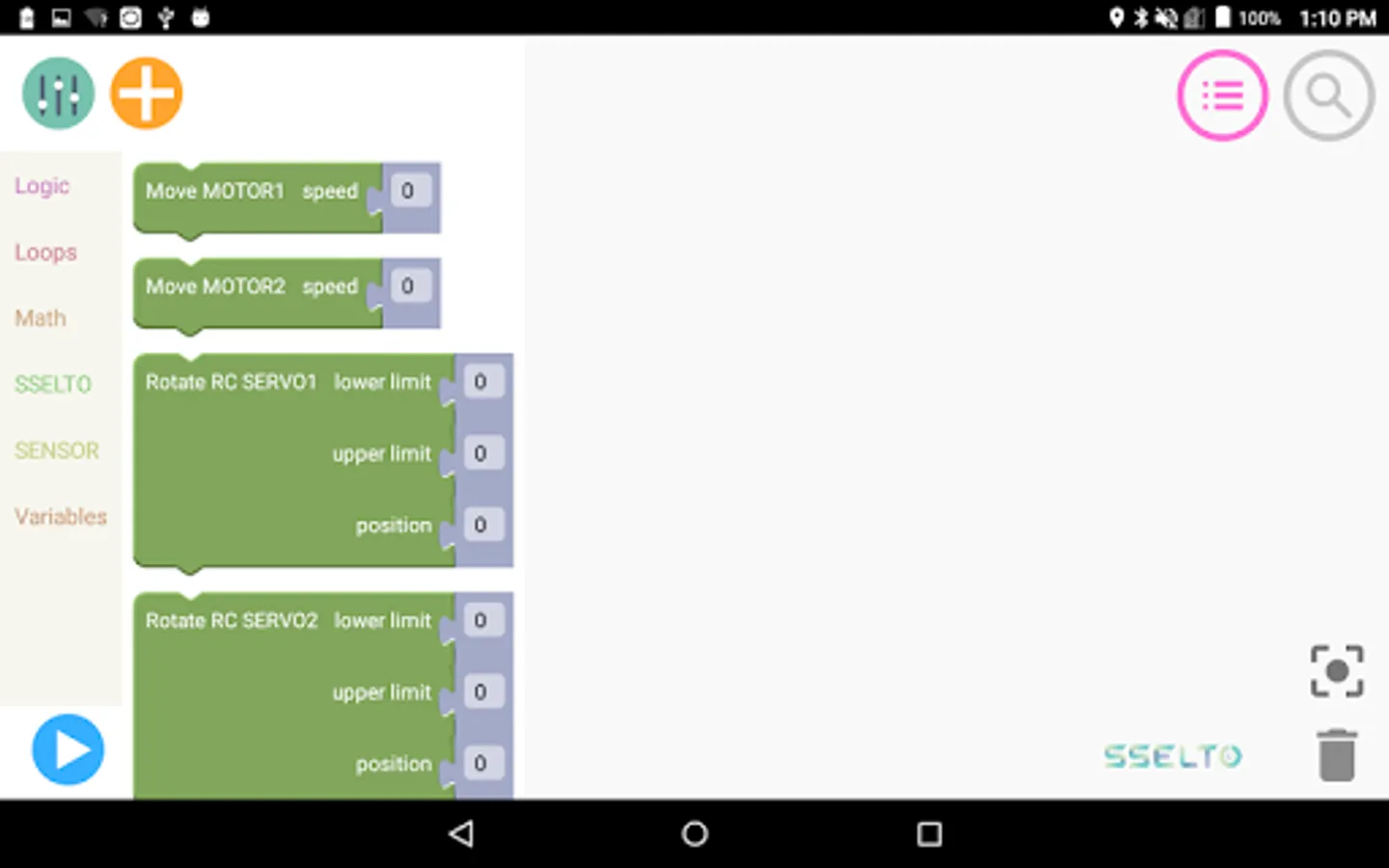 'SSELTO coding' is an application for coding training, and it is easy to program with the SSELTO models using block coding.
